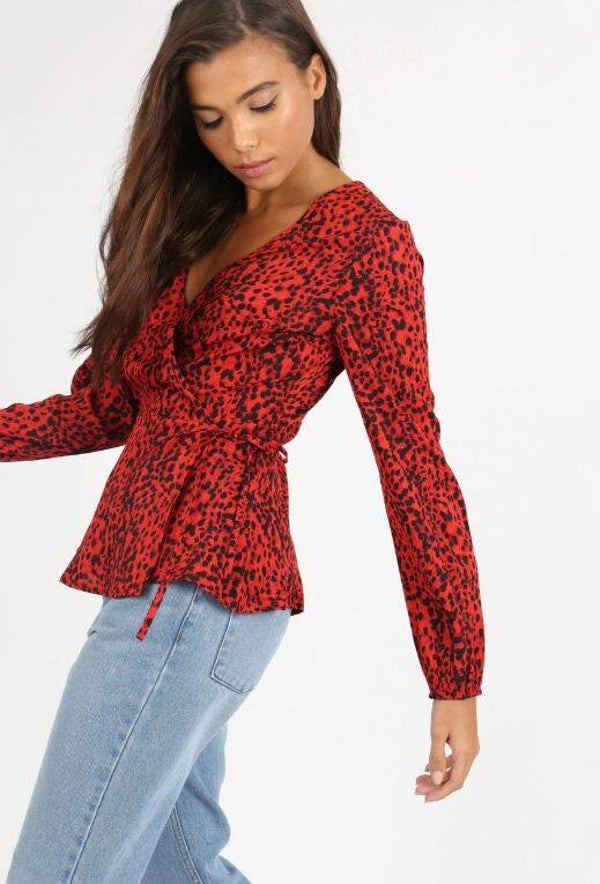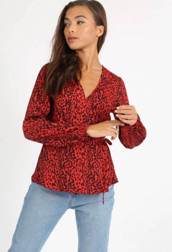 Leopard wrap blouse in een mooie rode kleur.